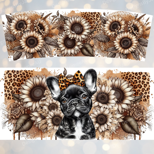 Leopard Print and Sunflowers Frenchie 40oz Digital Sublimation Tumbler Wrap