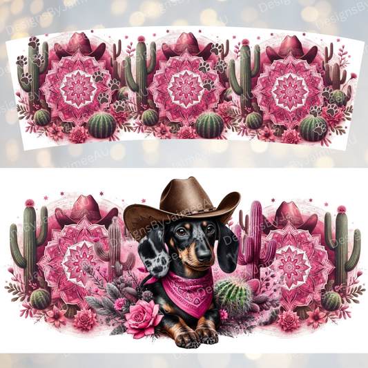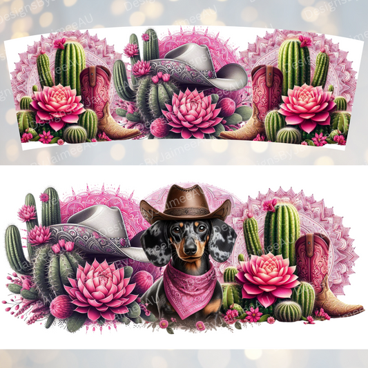 Pink Country/Western Themed Dapple Dachshund #1 40oz Digital Sublimation Tumbler Wrap