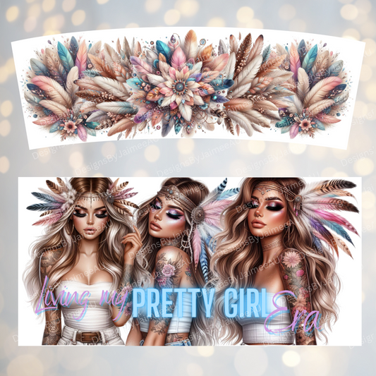 Living My Pretty Girl Era Pastel and Feather Crown 40oz Digital Sublimation Tumbler Wrap