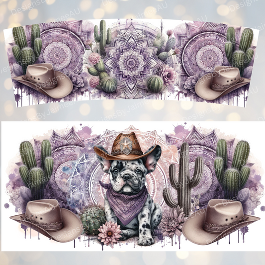 Purple Country/Western Themed Frenchie 40oz Digital Sublimation Tumbler Wrap