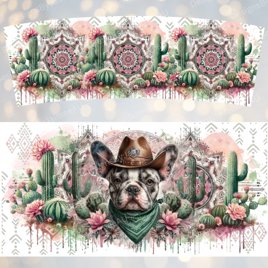 Pink Aztec Country/Western Themed Frenchie 40oz Digital Sublimation Tumbler Wrap
