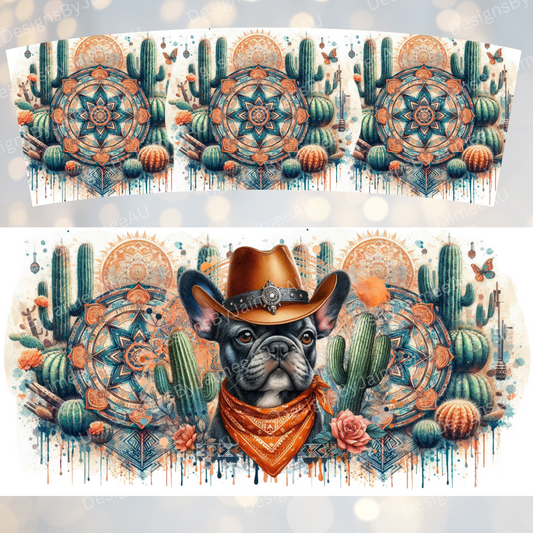 Orange Country/Western Themed Frenchie 40oz Digital Sublimation Tumbler Wrap