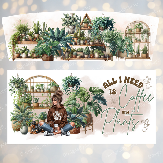Crazy Plant Lady "All I Need is Coffee and Plants" Daily Affirmations 40oz Digital Sublimation Tumbler Wrap
