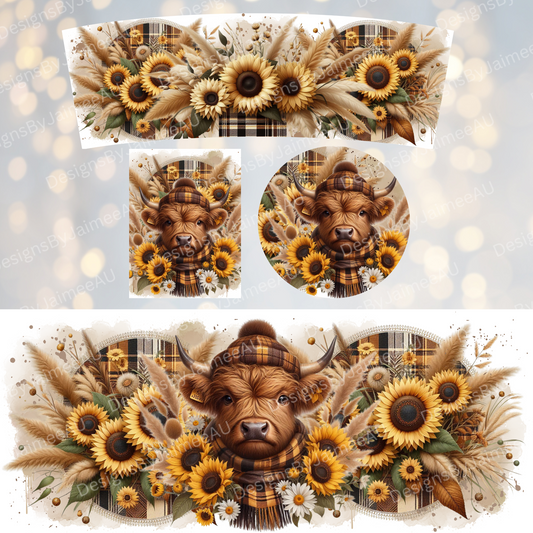 Gingham Highland Cow 40oz Digital Sublimation Tumbler Wrap, Air Freshener and Car Coaster Set