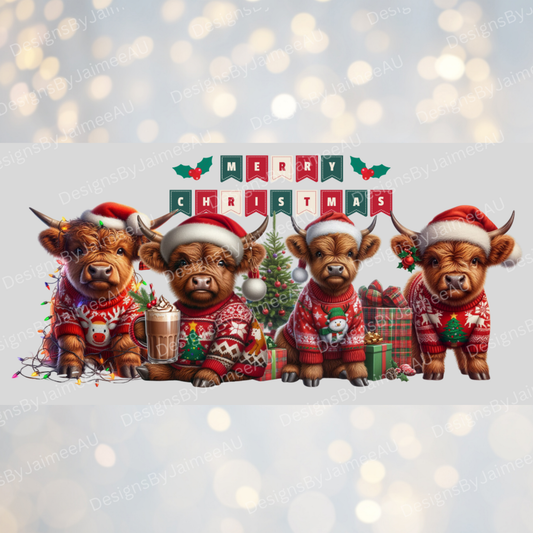 Christmas Highland Cows 16oz UV DTF Transfer Wrap PNG Image