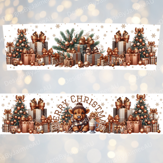 Copper and Browns Christmas Highland Cow - Digital 20oz Tumbler with Handle Wrap Design