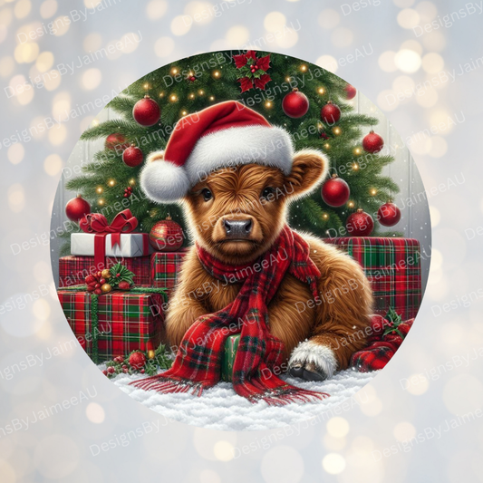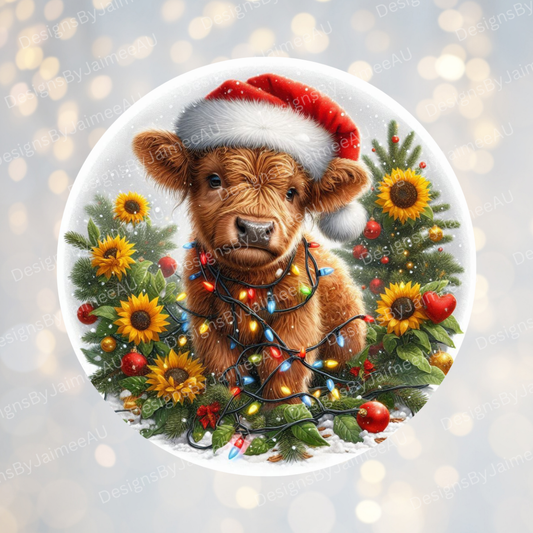 Christmas Highland Cow #1 Digital Sublimation Ornament Design