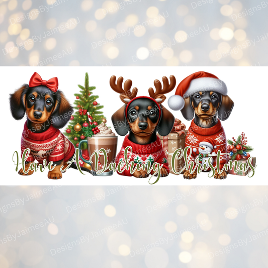 Christmas Dachshunds "Have a Daching Christmas" Digital Download 16oz UV DTF Transfer Wrap PNG Image