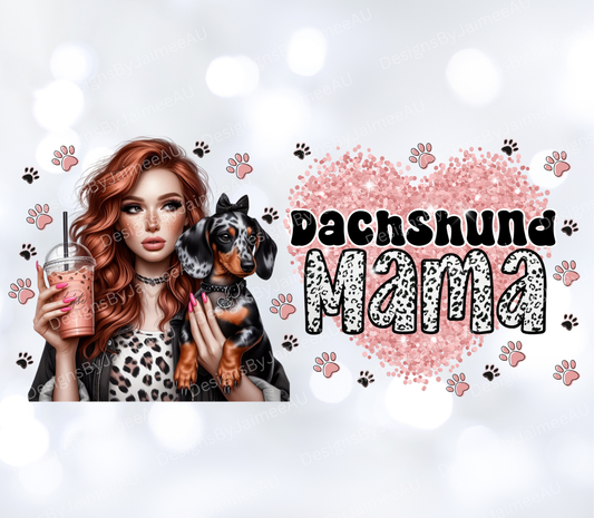 Dachshund Mama, Glitter heart/Red Head Digital Download 16oz UV DTF Transfer Wrap PNG Image