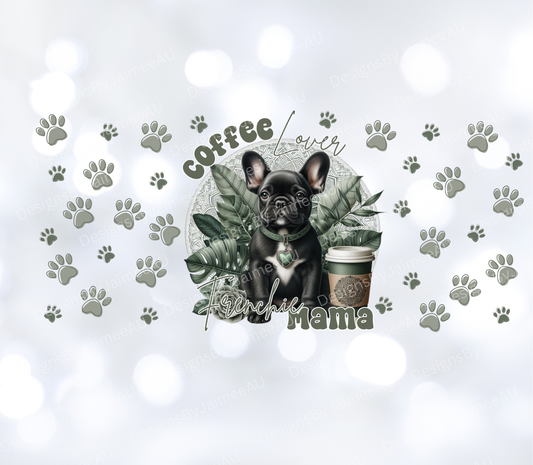 Sage Green Tropical French Bulldog "Coffee Lover, Frenchie Mama" Digital Download 16oz UV DTF Transfer Wrap PNG Image