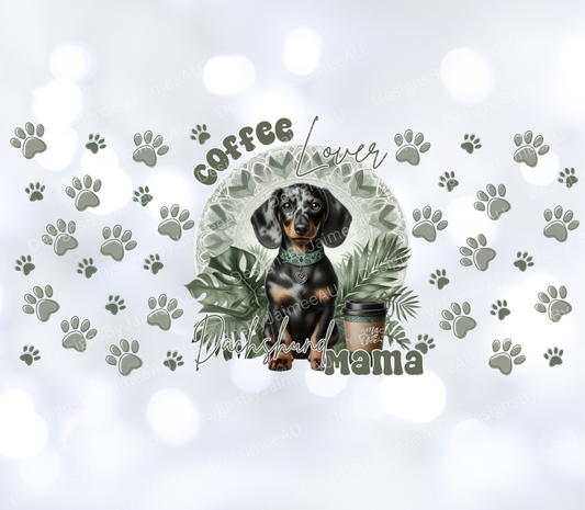 Sage Green Tropical Dachshund "Coffee Lover, Dachshund Mama" Digital Download 16oz UV DTF Transfer Wrap PNG Image