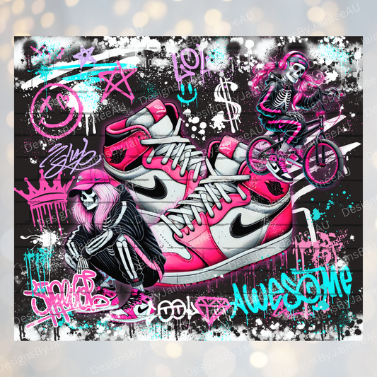 Hot Pink Graffiti Style Skeleton - Digital 20oz Sublimation Tumbler Wrap