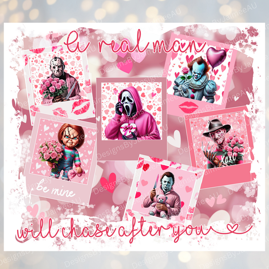"A Real Man Will Chase After you" Valentine Horror - Digital 20oz Sublimation Tumbler Wrap