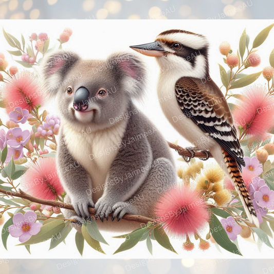 Koala and Kookaburra - Pastel Earthy Watercolour Digital 20oz Sublimation Tumbler Wrap