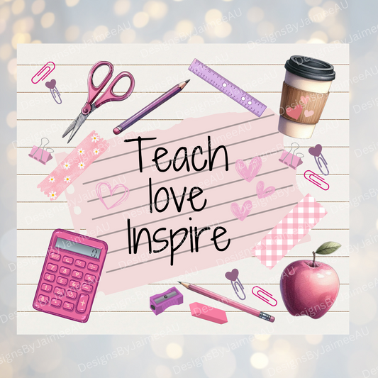 "Teach, Love, Inspire" Teacher Digital 20oz Sublimation Tumbler Wrap