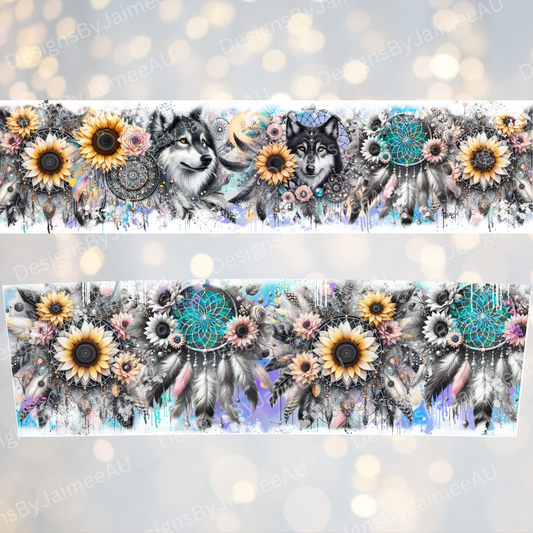 Black and White Wolves with Pastel watercolours- Digital 20oz Tumbler with Handle Wrap Design