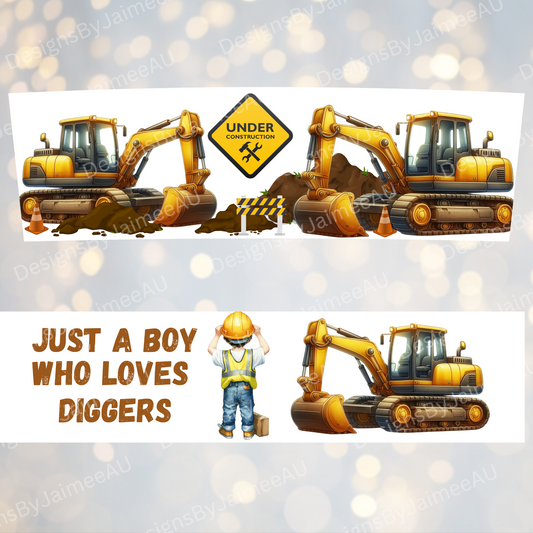 "Just a Boy who loves Diggers"- Digital 20oz Tumbler with Handle Wrap Design