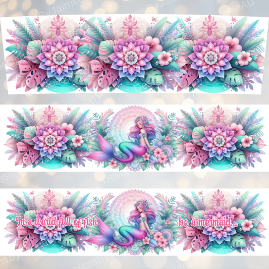 "In a world full of fishes be a mermaid" Pastel Mermaid- Digital 20oz Tumbler with Handle Wrap Design