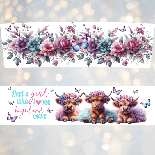 "Just a girl who loves highland cows" - Digital 20oz Tumbler with Handle Wrap Design
