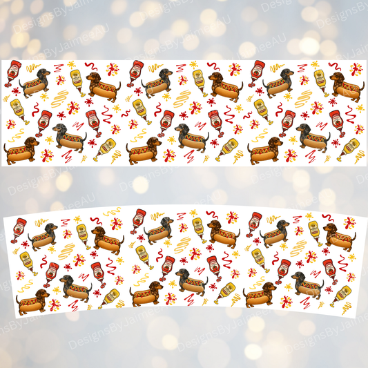 "HotDogs" - Dachshund Design - Digital 20oz Tumbler with Flip Lid/Handle