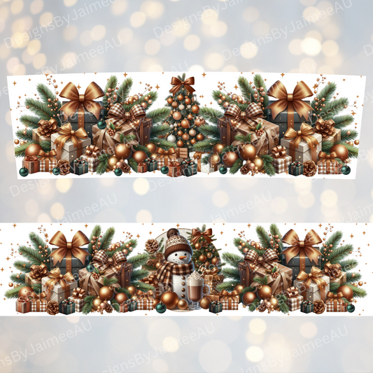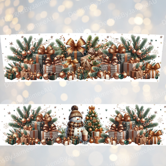 Copper and Green Snowman #2 - Digital 20oz Tumbler with Handle Wrap Design