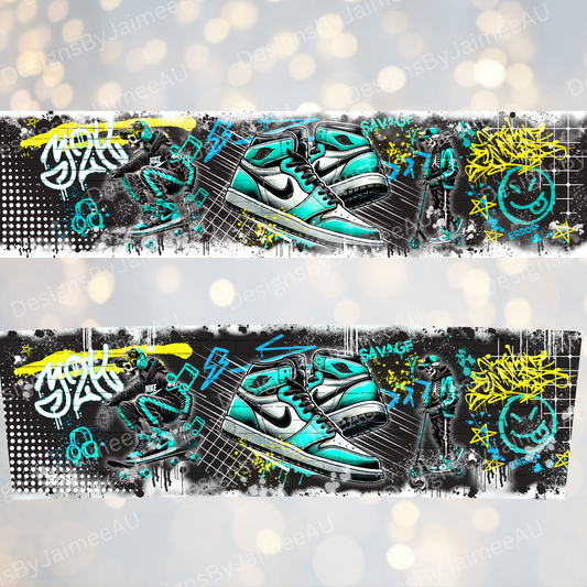 Aqua Graffiti Styled Skeleton- Digital 20oz Tumbler with Handle Wrap Design