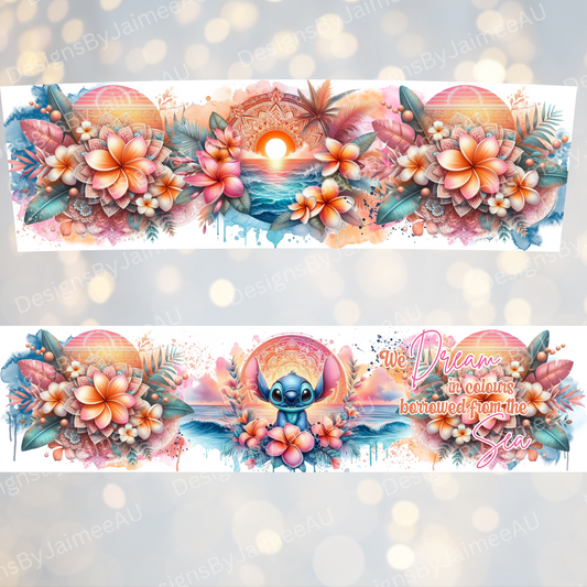 Pink and Orange Tropical Stitch - Digital 20oz Tumbler with Handle Wrap Design
