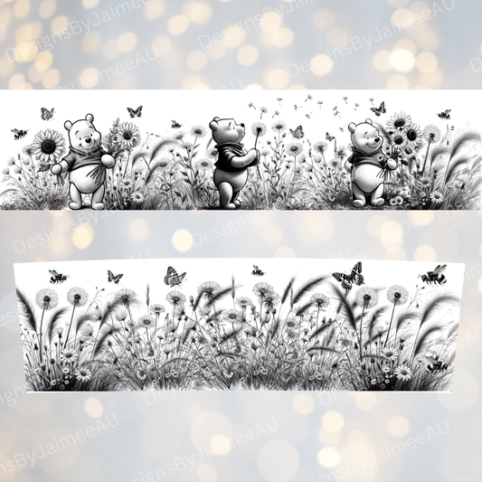 Springtime - Winnie The Pooh -Black and White Line Drawing- Digital 20oz Tumbler with Handle Wrap Design