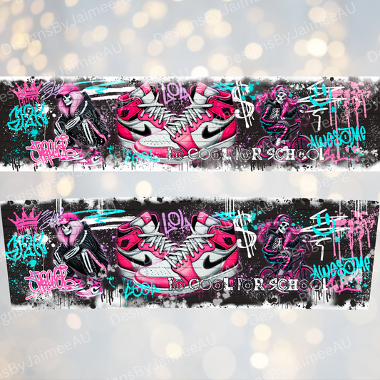 Pink Graffiti Styled Skeleton- Digital 20oz Tumbler with Handle Wrap Design