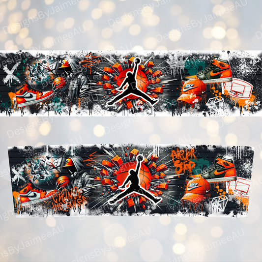 Graffiti Inspired Basketball- Digital 20oz Tumbler with Handle Wrap Design