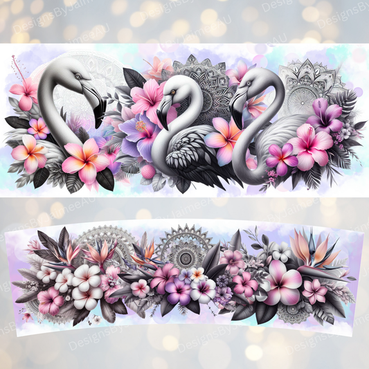 Black and White Flamingos with Pops of Pastels- Digital 30oz Sublimation Tumbler Wrap