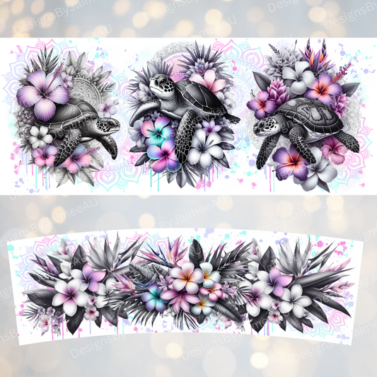 Black and White Turtles with Pops of Pastels- Digital 30oz Sublimation Tumbler Wrap