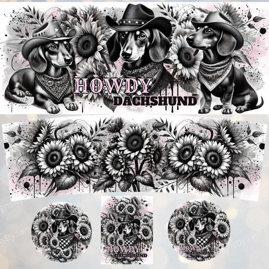 Howdy Dachshund - Pink and Black - Set (Includes Car Coaster and Air Freshener Designs) - Digital 30oz Sublimation Tumbler Wrap