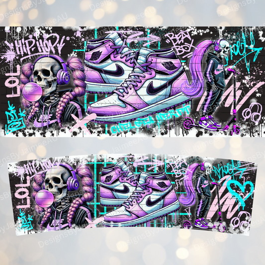Purple Graffiti Inspired Skeletons - Digital 30oz Sublimation Tumbler Wrap