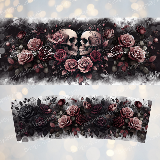 "Eternally Yours, Even in Ruin" Gothic Skulls, Dark Romance - Digital 30oz Sublimation Tumbler Wrap