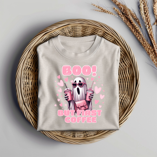 "Boo - But First Coffee" Sheet Ghost Digital DTF Transfer PNG Image