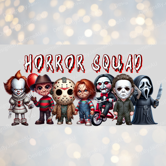 "Horror Squad" - Cute Horror Movie Characters Digital 16oz UV DTF Transfer Wrap PNG Image