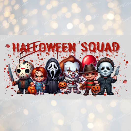 "Halloween Squad" - Cute Horror Movie Characters Digital 16oz UV DTF Transfer Wrap PNG Image