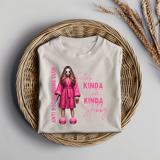 "Feeling Kinda Cute, Kinda Stabby" Antisocial MUMS/MOMS Club - Horror Movie Character Inspired Digital DTF Transfer PNG Image