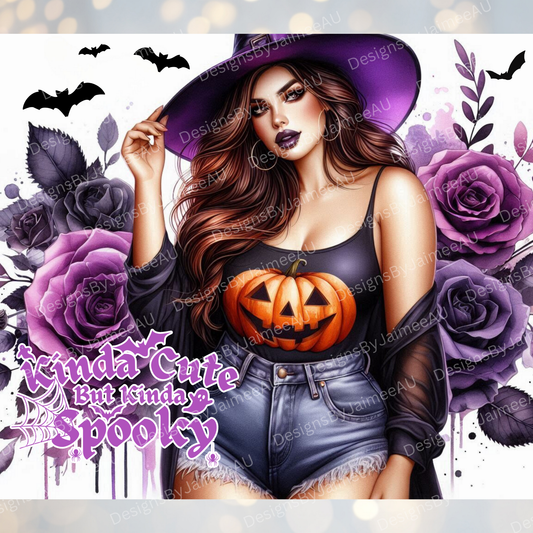 "Kinda Cute, Kinda Spooky" Curvy Witch Digital 20oz Sublimation Tumbler Wrap