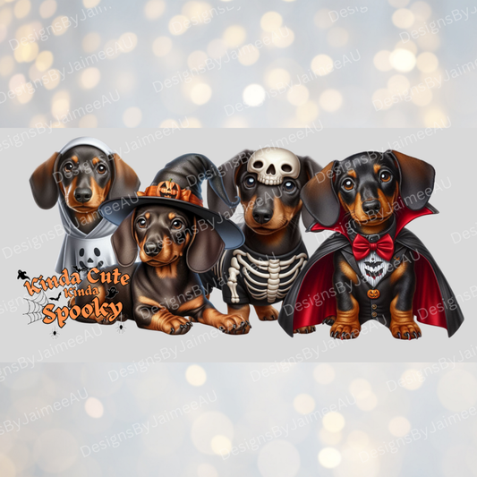 "Kinda Cute, Kinda Spooky" Halloween Dachshunds Digital 16oz UV DTF Transfer Wrap PNG Image