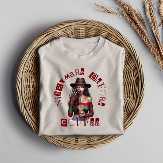 "Nightmare Before Coffee" Freddy Krueger Inspired Digital DTF Transfer PNG Image