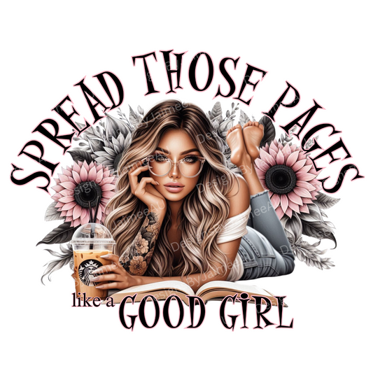 "Spread Those Pages Like A Good Girl" Book girlie Digital DTF Transfer PNG Image
