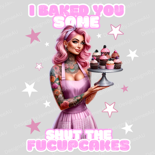 "I Baked you some shut the FUCUPCAKE" retro Housewife Digital DTF Transfer PNG Image