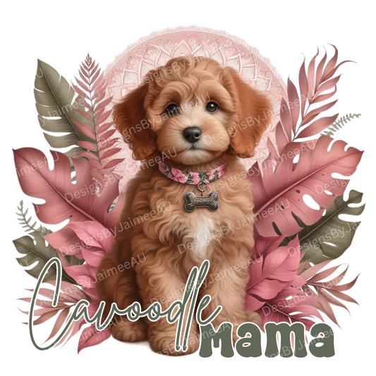 Cavoodle Mama - Dusty Pink Tropical Digital DTF Transfer PNG Image