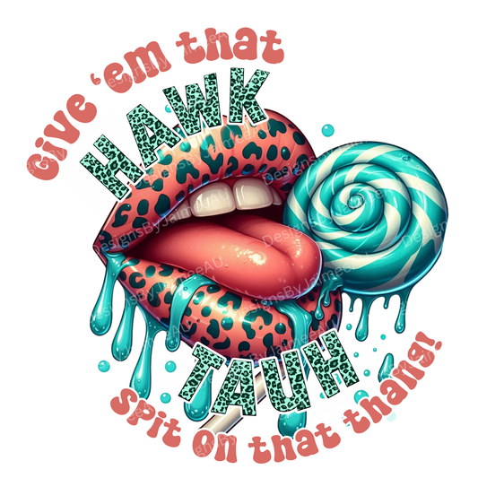 Vibrant Hawk Tuah "Spit on that thang!" Lips and Lollipop Digital DTF Transfer PNG Image