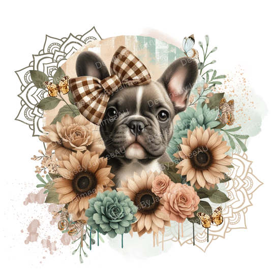 Vintage floral Frenchie Digital DTF Transfer PNG Image