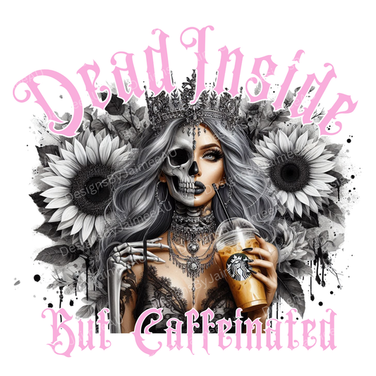 "Dead Inside But Caffeinated" Skeleton Woman Digital DTF Transfer PNG Image
