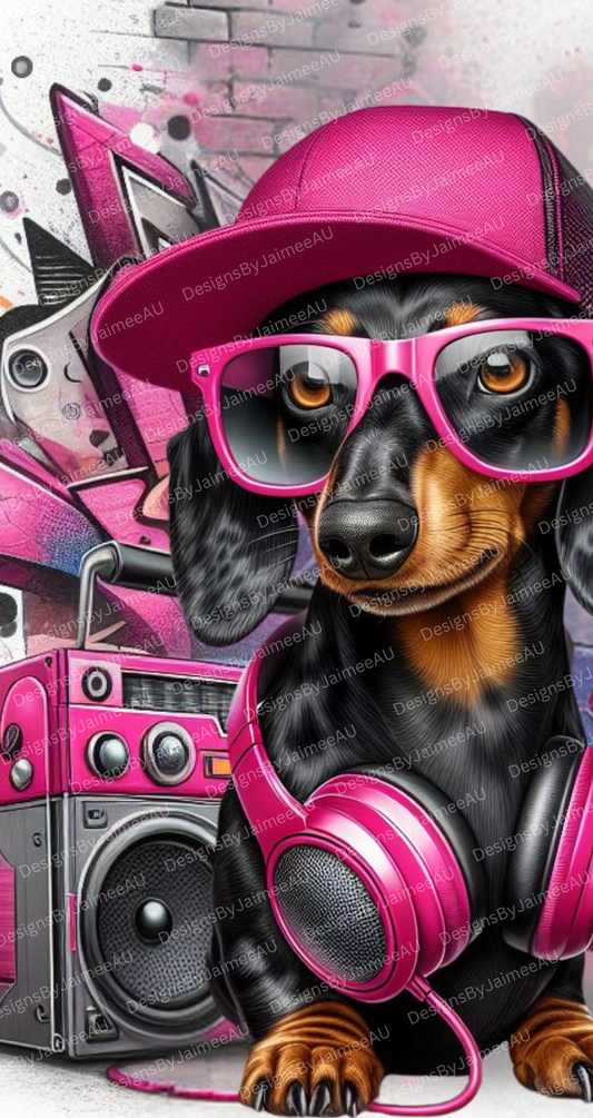 Hip Hop Dachshund #3 Hot Pink Digital Phone Case Design