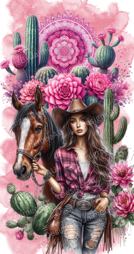 Hot Pink Cowgirl with Horse Country/Western Digital Phone Case Design